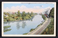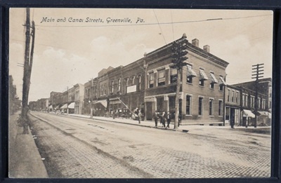 | Continued ... The early settlement was destitute of any means of public conveyance to, or from the place until the turnpike was built from Pittsburgh to Erie, which was completed in the summer of 1816. David Leech had the contract for building that portion extending through Mercer county. "Going to Georgetown or Mercer to take the stage," was as common a phrase as it is today "to take the cars" at one of our railroad stations. The place now began to be favored with a weekly mail, carried on foot from Mercer. A post office was now granted and Mr. Alexander P. Waugh appointed Postmaster under the administration of John Quincy Adams. The revenue of the office at this time reached $5 per quarter. The first newspaper seen in the place was the Pittsburgh Gazette; but a county paper was established at an early day in the history of the county and was taken by all the reading people of the county without regard to politics. The Western Press was established by Jacob Harrington in 1806; The Mercer Luminary in 1814 by J. Morehead; the Greenville Gazette, now the Shenango Valley Argus, in 1830, by Richard Hill; the Greenville Advance established in 1870 by W. H. H. Dumars. And, as this county exceeds any county in the State in the number of weekly papers, they might be enumerated in their order: The Mercer county Whig, (now Dispatch) in 1844, by J. B. Butter; the Sharon Herald, by W. H. Frey in 1860; the Sharon Times, by Geo. D. Herbert in 1865; the Sharpsville Advertiser, by Jonas Pierce in 1870; the Jamestown Sun, by D. L. Calkins in 1873; the Sandy lake News,by J. F. Johnston in 1874; making nine respectable weekly papers in the county. In the year 1836, the Erie Extension Canal was located and put under contract from New Castle to Erie. This enterprise noted an epoch in the history of Greenville that has not been equaled by any improvement since that time. Real estate doubled, tripled and quadrupled itself in a few weeks. In the spring of 1840, the first canal boat arrived here from Pittsburgh ladened with merchandise. The change was at once brought about - that of carrying freight by water instead of hauling by wagon, with no little grumbling on the part of teamsters, their calling gone, and not seeing the advantage of the public improvement. In 1842 the first trip was made through the entire length of the canal to Erie. Forty years have now passed away since this great work was begun, and today, it has passed away, and must be numbered amongst the things that were. The more modern improvement of locomotive power have taken its place. Another epoch in the history of Greenville, took place in 1844, by the iron business that was begun in that year. Two blast furnaces were built on the west side of the Shenango; the first one by a company of citizens of the place, headed by John A. Waugh; the second one by Himrod & Vincent, of Erie. The manufacture of pig iron by raw cool being a success, gave an impetus to the business that lasted until the coal became, in a measure, exhausted in the coal mines of the upper end of the valley. Greenville of today, presents a town of 3,500 inhabitants, with some 30 business blocks built of brick, with foundrys, machine shop, carriage and wagon manufacturies, planing mills, lumber mills and rolling mills - with graded streets, shaded avenues, handsome private residences, unequaled by any town of its numbers in the State. In well finished churches and elegant public buildings, of which Thiel College stands permanently situated on an eminence in a beautiful oak grove, overlooking the town and country for miles in every direction. (Source: The Record-Argus, Sat., Nov. 14, 1874, pg. 5)