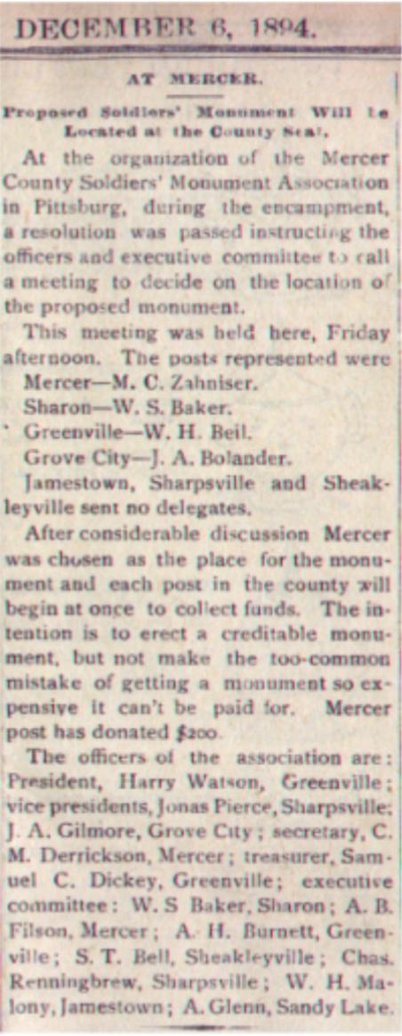 at Mercer, was dedicated November 11, 1897. “Mercer County’s Tribute to