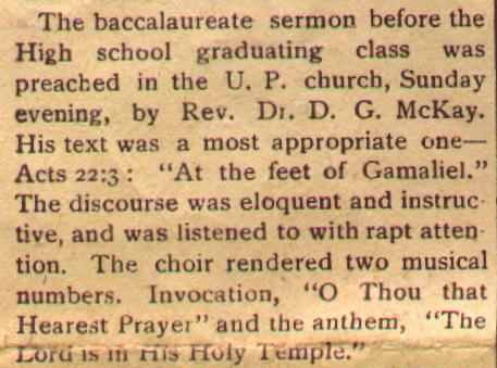 baccalaureate sermon before the High school graduating class was